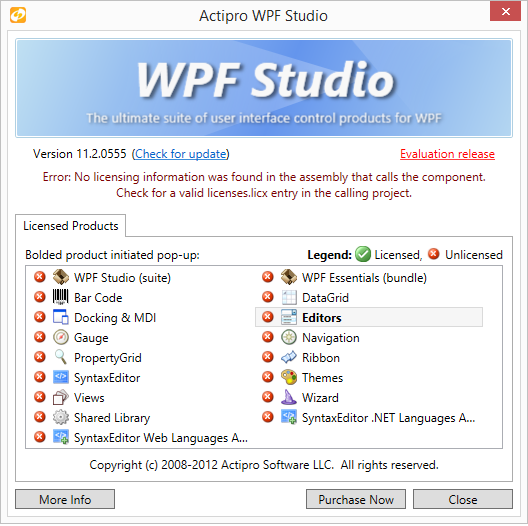 Версия 4.2.2.2. Для запуска примеров требуются компоненты Actipro. Без компонентов запустить не получается.