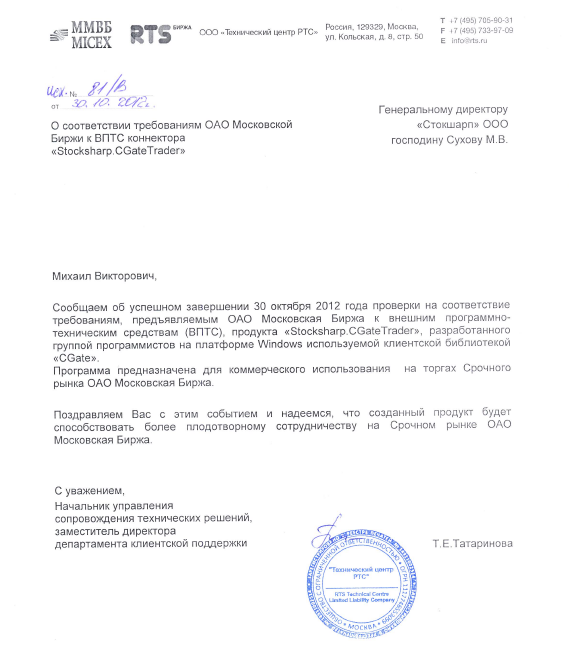 Есть хорошая новость для всех нас - StockSharp CGate прошел сертификацию биржей!