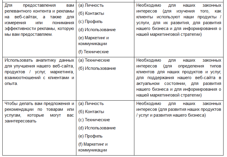 Цели, для которых мы будем использовать ваши персональные данныеНиже мы изложили в виде таблицы описание всех способов, которыми мы планируем использовать ваши персональные данные, и на какие правовые основания мы полагаемся для этого. Мы также определили, каковы наши законные интересы, где это уместно.