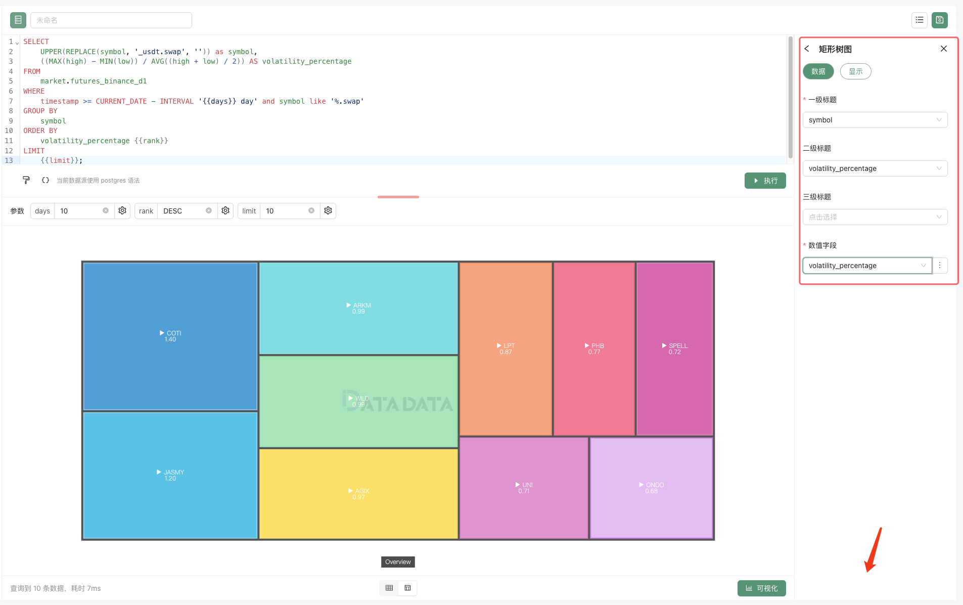 FMZ Quant, as a professional quantitative trading platform, is supported by numerous quantitative trading tools. At present, the "Data Exploration" module of the FMZ Quant Trading Platform has integrated the services of the datadata platform, giving users more advantages in multidimensional data analysis, mining visual data, exploring trading strategies, and other aspects. FMZ's self-developed datadata platform is a quantitative financial data platform. Using SQL queries to analyze massive amounts of data and configuring them through visual interfaces, generating various charts suitable for data analysis and sharing them with the team, allowing us to easily grasp market trends and seize investment opportunities!