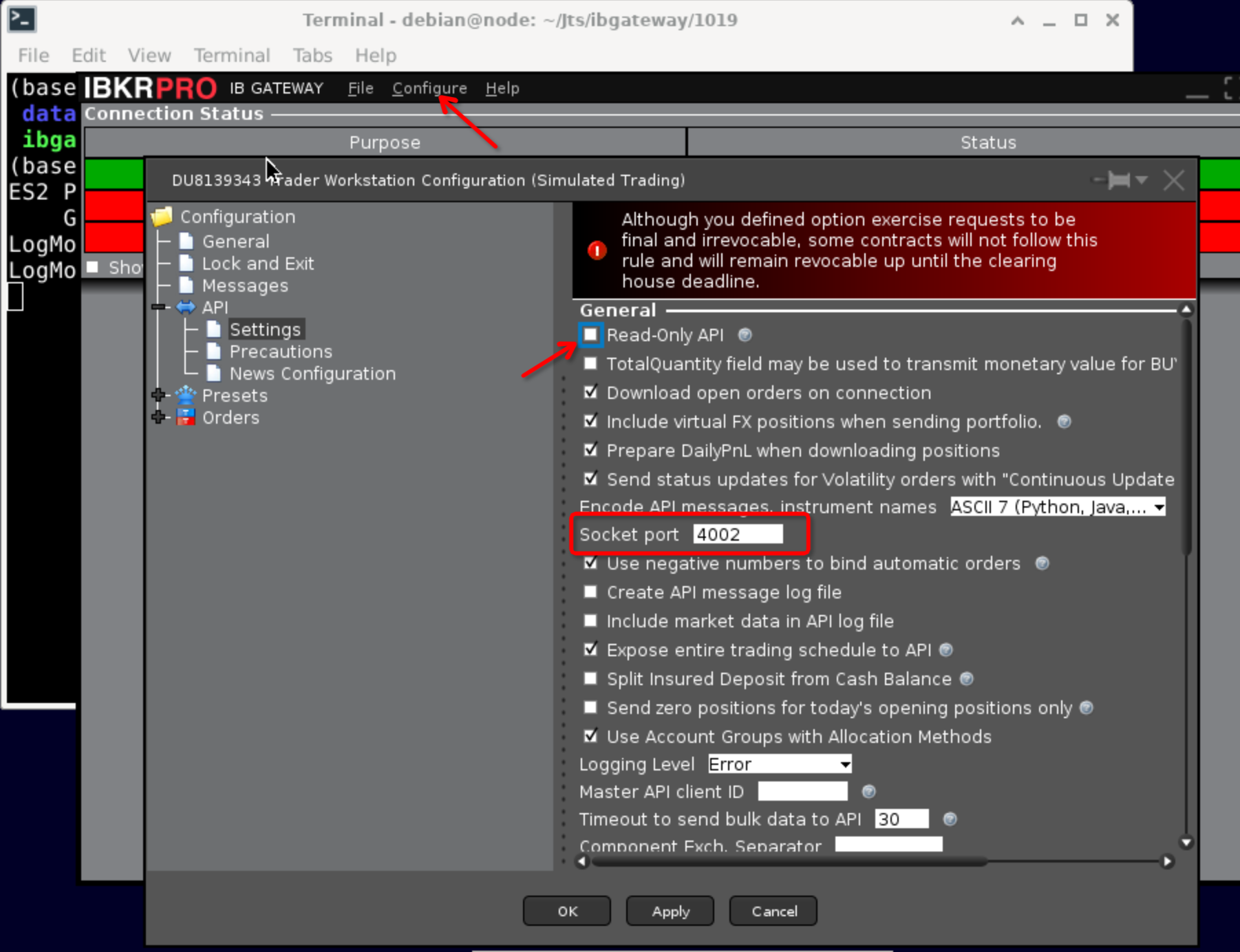 After installation, log in and find the API option. Make sure to uncheck "Read-Only API". The port number is also in the settings. Please configure the exchange correctly according to this port number.