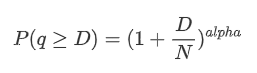 Here, N is the parameter for normalization. We will choose the average trade amount, M, and set alpha to -2.06. The specific estimation of alpha can be obtained by calculating the P-value when D=N. Specifically, alpha = log(P(d>M))/log(2). The choice of different points may result in slight differences in the value of alpha.