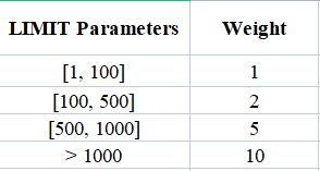 The weight of the request depends on the value of the "LIMIT" parameter.