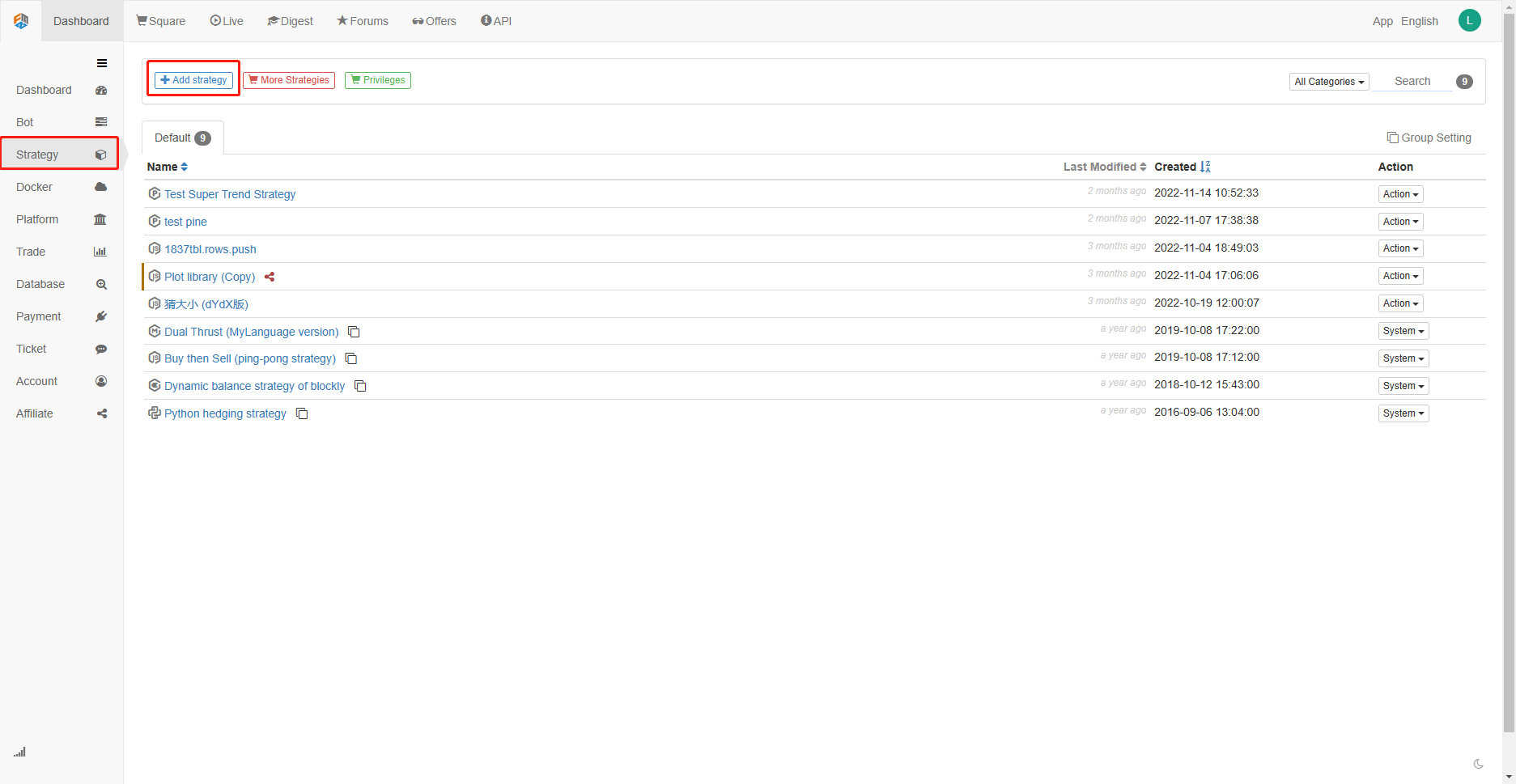 With visual programming, you don't need to remember the grammar and method name, just simply browse the function module to find what you want. The original intention of the FMZ Quant is also to help more quantitative beginners reduce the entry threshold and increase their interest in quantification. Everyone can become a quantitative trader!