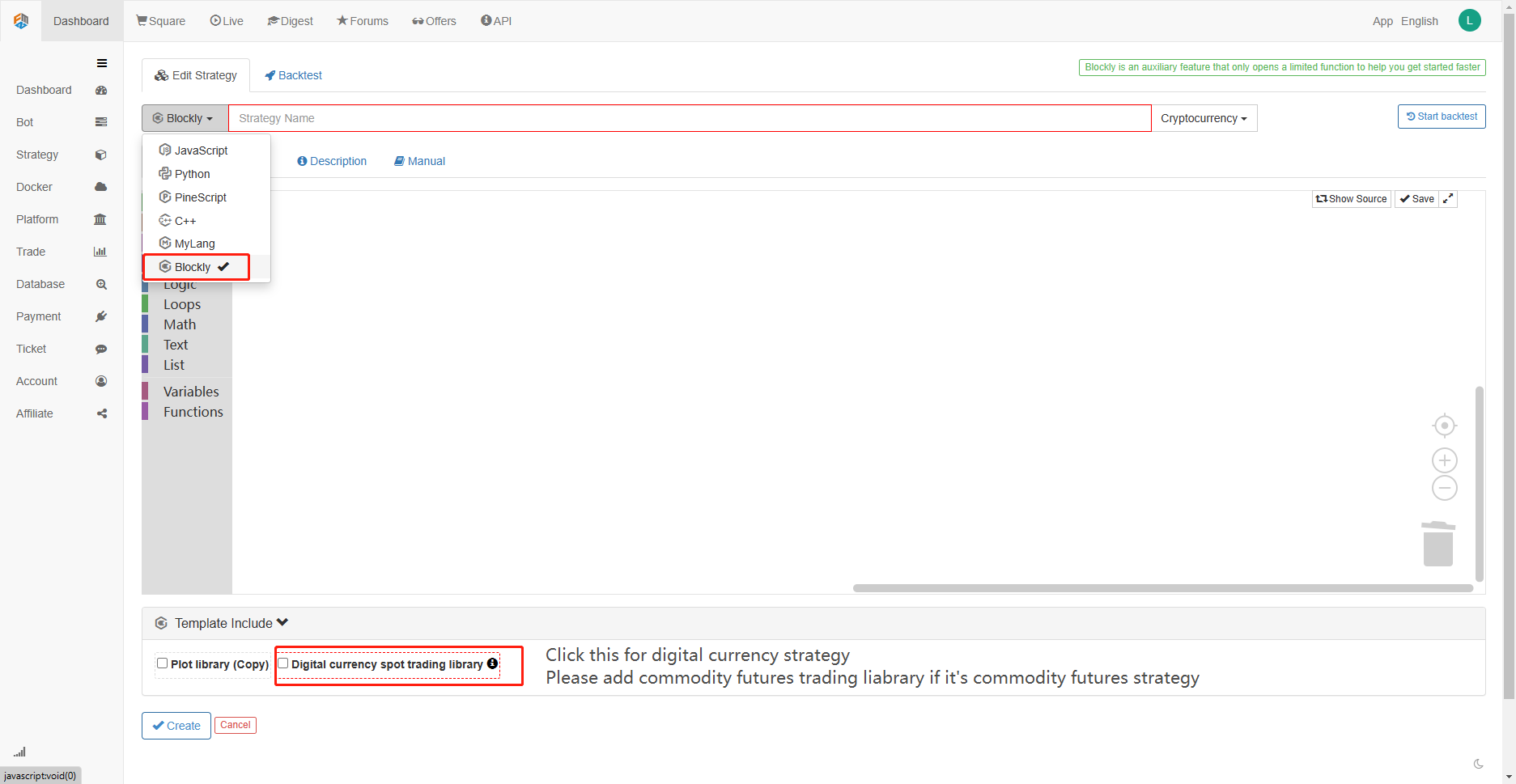 **Blockly strategy-writing Step 1**