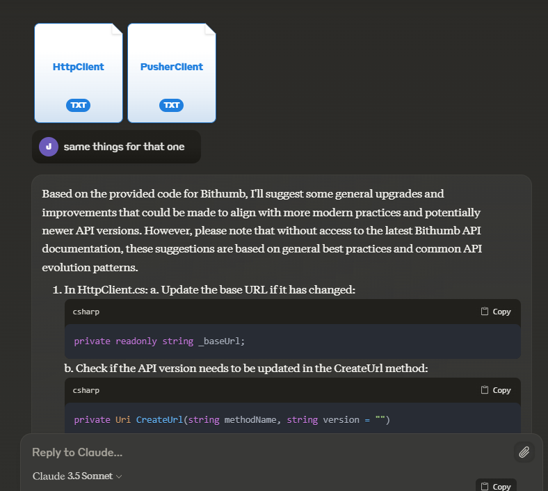 Скрин процесса, как идет адаптация коннектора под изменившийся протокол крипто-биржи:
