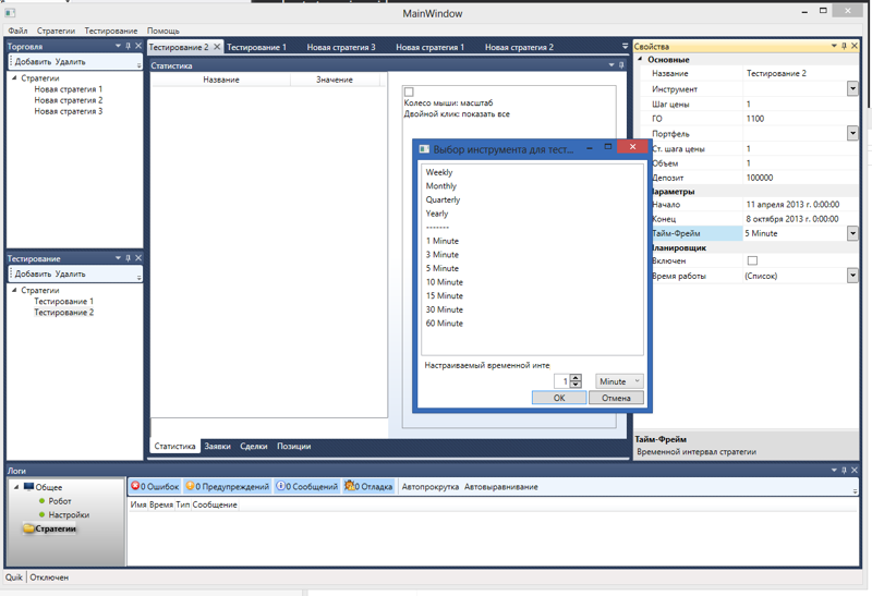 Так же вы сможете использую Visual studio отнаследовавшись от специальной библиотеки создать и скомпилировать стратегию, а потом просто открыть её в Wealth Script Executer.