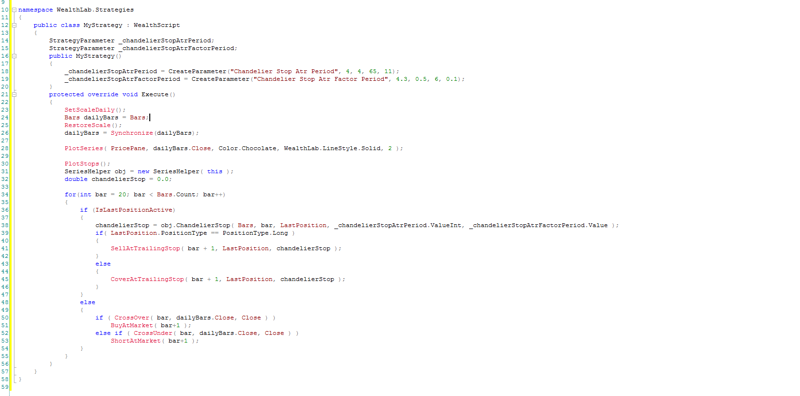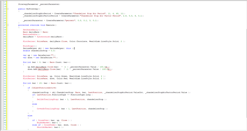 В качестве сетапа для открытия позиции, мы будем использовать пробой вчерашней цены закрытия. Для выхода будем использовать выход люстры.