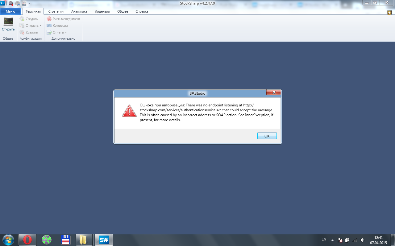 There was no endpoint listening at http://stocksharp.com/se...thenticationservice.svc that could accept the message.