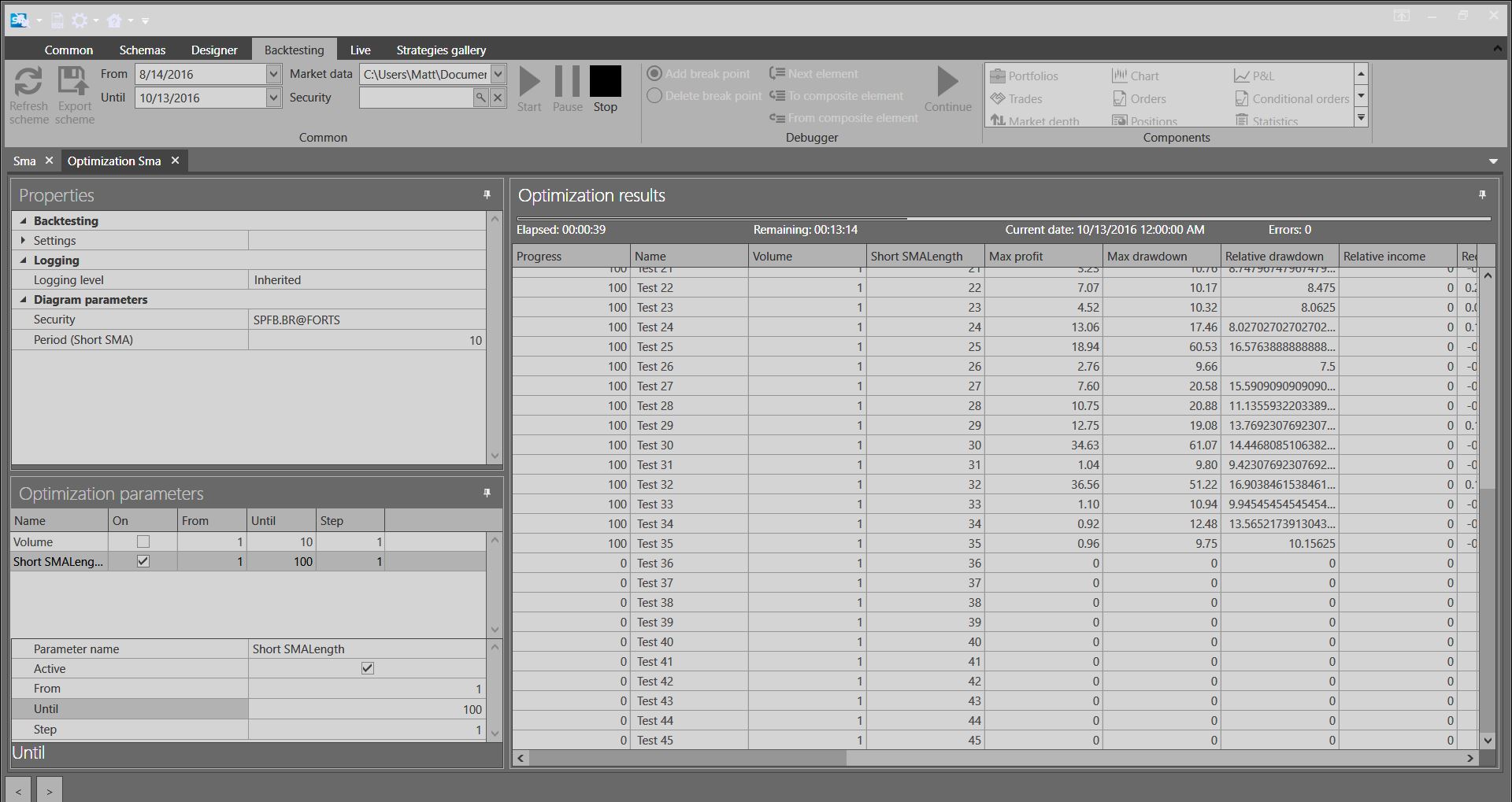 4. When all necessary data will have been downloaded you can go to "Sma" scheme and try to backtest it.